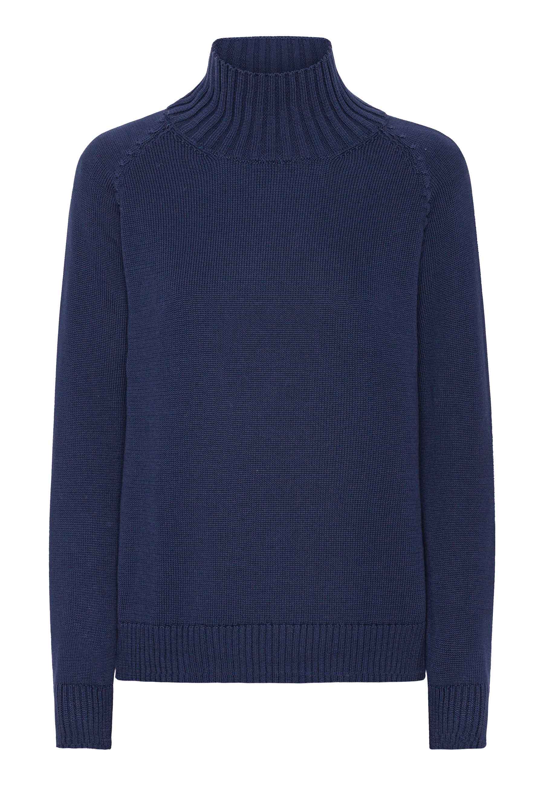 Den med høj krave i mørkeblå melange