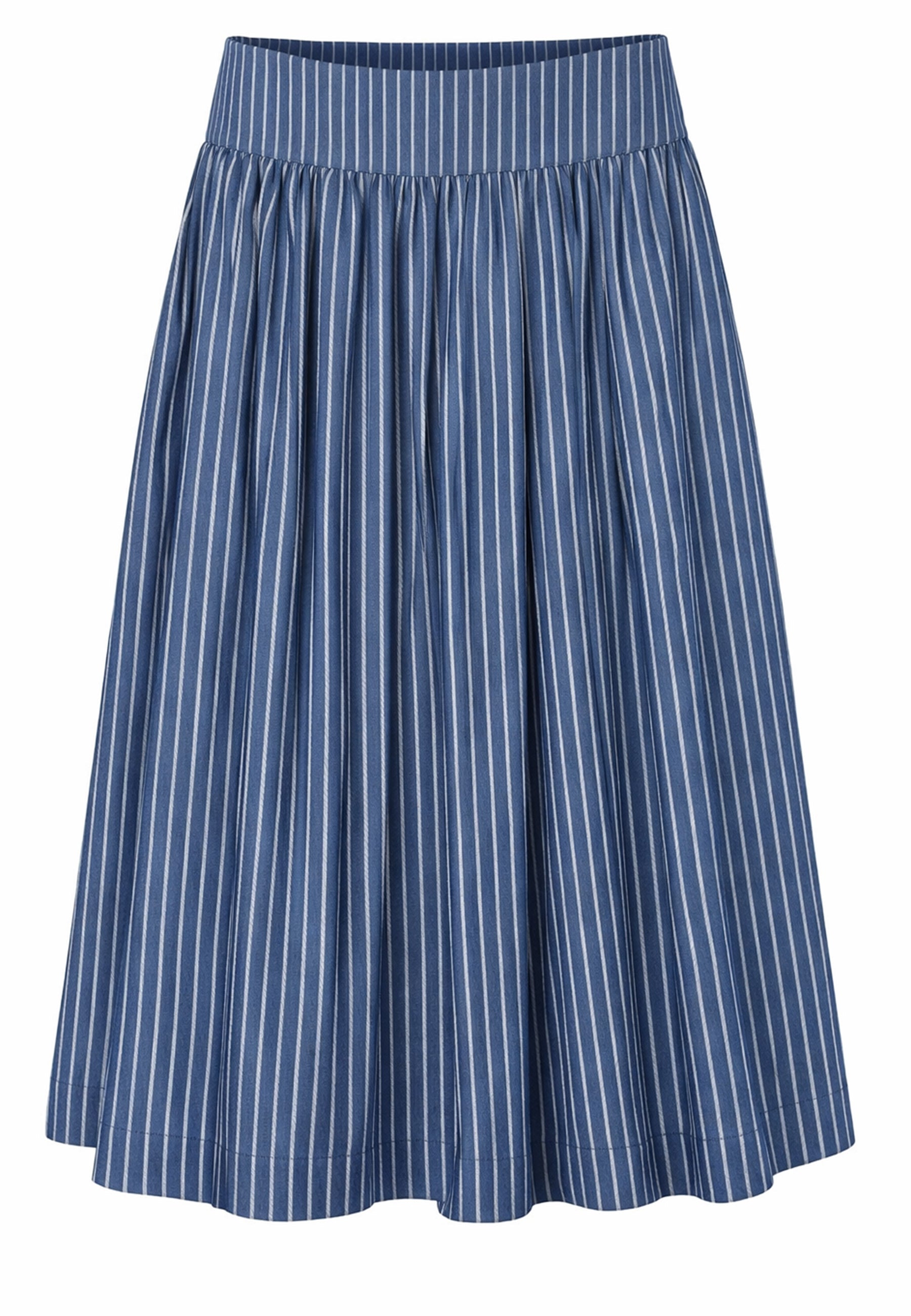 Nederdelen er syet i økologisk vævet bomuld med en let struktur, der giver stoffet et smukt fald og et enkelt, velafbalanceret udtryk. De klassiske striber tilfører ro og retning og gør modellen nem at kombinere med resten af garderoben.